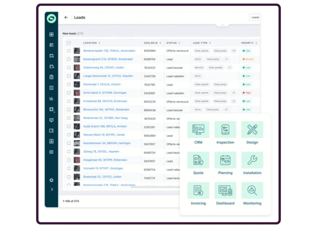 Sollit is een in Nederland bekend ERP-systeem dat workflows en processen van installatiebedrijven ondersteunt, van planning tot service. Het promoot zichzelf als all-in-one tool maar dan wel specifiek voor de installatiebranche. Daar zit de sterkte ook: je kunt alles er in regelen, van lead tot offerte en installatie oplevering. Daar zit echter ook meteen de zwakte: omdat het zo breed is maar wel in een niche opereert, kun je tegen beperkingen aanlopen in de specifieke componenten. Zo horen we vaak dat de ontwerp- en calculatie module niet fantastisch werkt, en dat CRM en ERP wat beperkter zijn dan de bekende pakketten zoals Zoho, Salesforce en Odoo.
