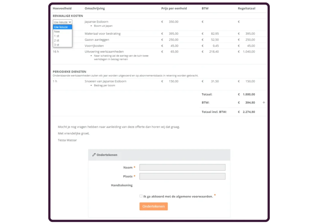 - Alles-in-één oplossing: CRM, marketing, planning, werkbonnen, voorraadbeheer, facturatie en HR.