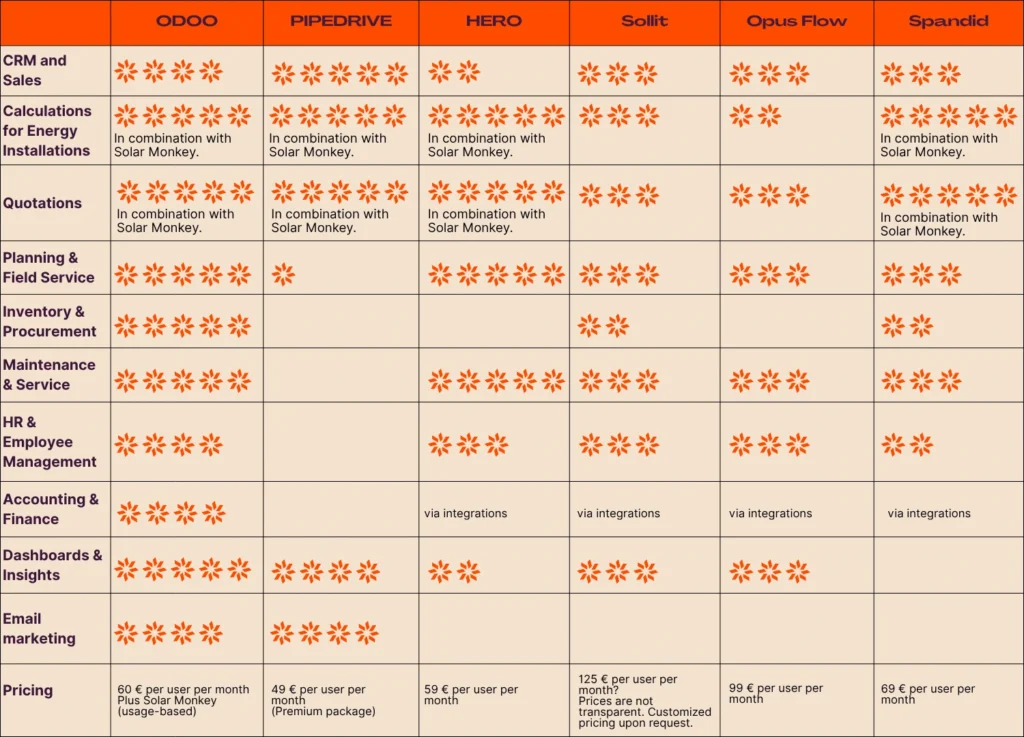 Als Solar Monkey hebben we een duidelijke focus: wij willen de allerbeste calculatie- en offerte tool zijn voor installateurs van energieproducten. We kiezen bewust die niche, want die focus helpt ons om het beste te zijn op dat specifieke stukje. Maar het proces van een installateur is veel breder, en de vraag voor complete procesoptimalisatie wordt vaak bij ons neergelegd. Hier hebben we dan ook veel ervaring mee. Onderstaand een greep uit de mogelijke CRM- en ERP systemen en onze kijk daarop.