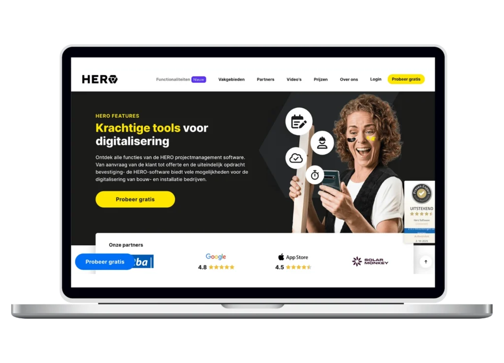 HERO is een branchegericht ERP-systeem voor installatie- en bouwbedrijven, met focus op buitendienst, werkbonnen en projectplanning. Dit werkt super als je vooral jouw buitendienst goed wil aansturen, die met de native app goed aangestuurd kan worden, en het opgeleverde werk goed geadministreerd. Helaas is HERO dan weer een stuk lichter op het vlak van CRM en sales.